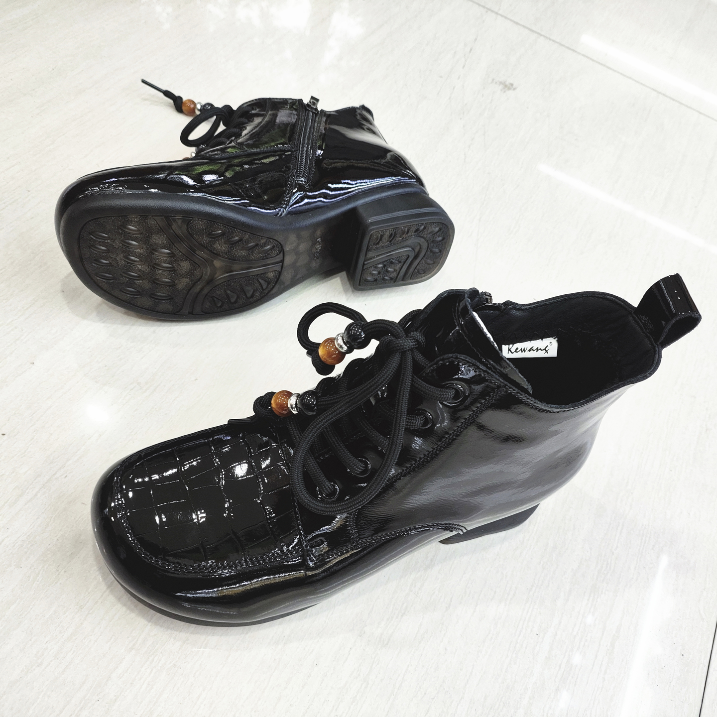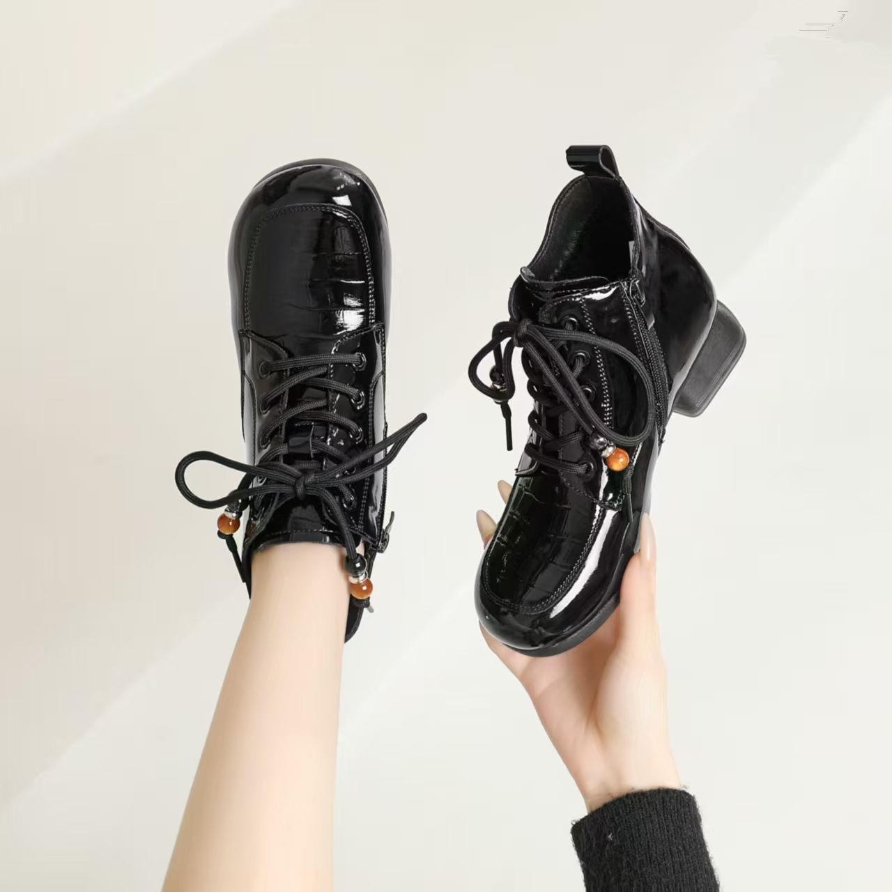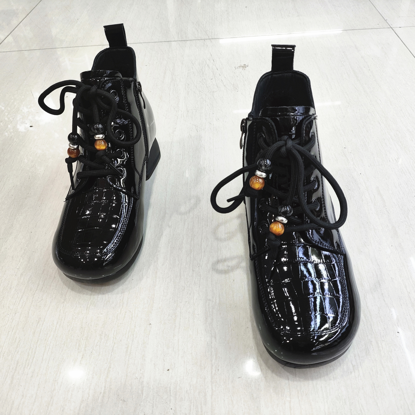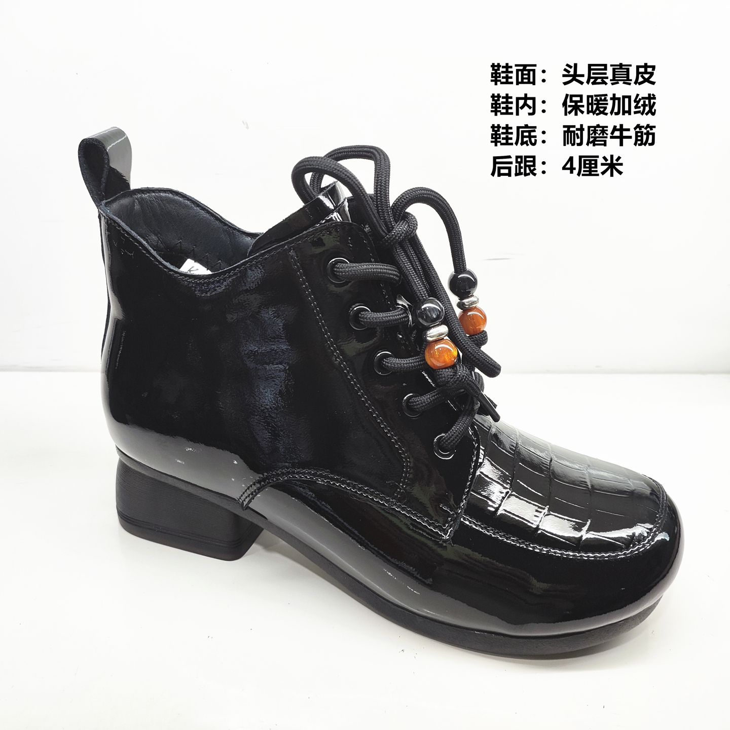 商场女靴子2025冬季新款漆皮时尚英伦风马丁短靴加绒保暖舒适棉靴