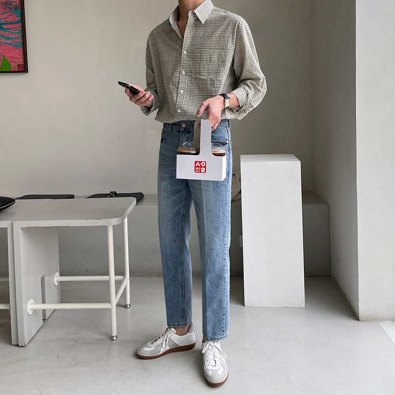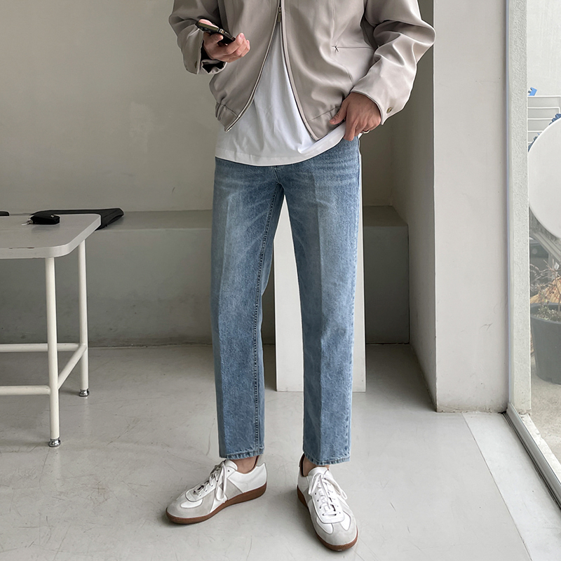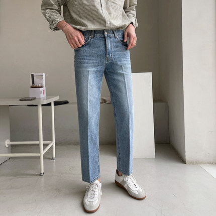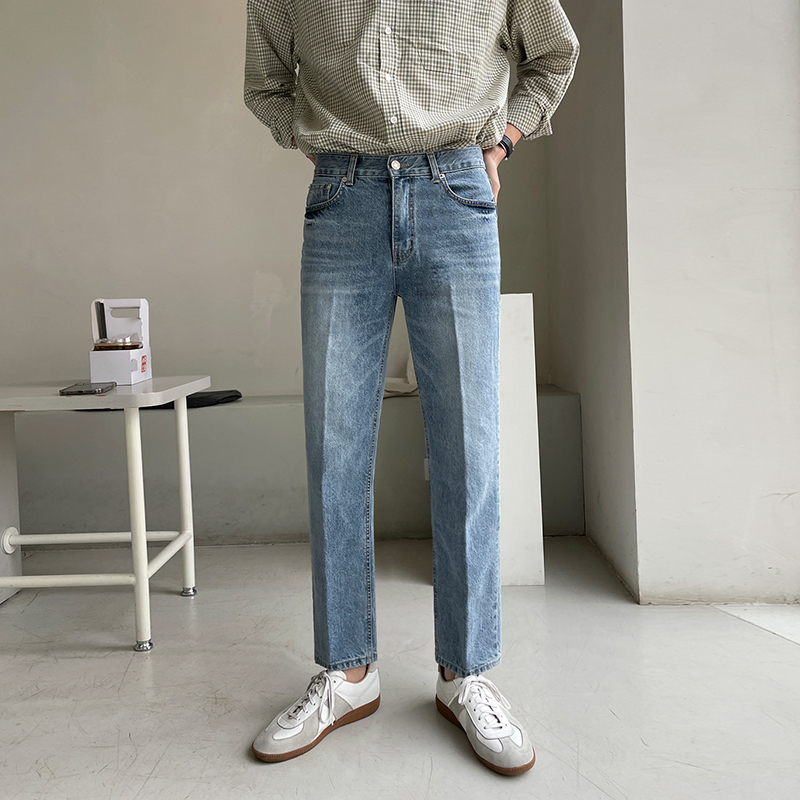MRCYC直筒修身九分牛仔裤男春季复古百搭韩系潮流水洗9分休闲裤子