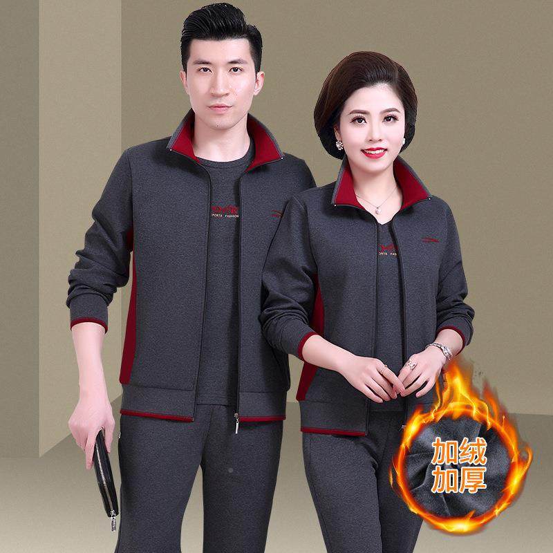 加绒女加厚中老年情侣装秋冬男运动服套装衣宽65707913松爸妈爸妈