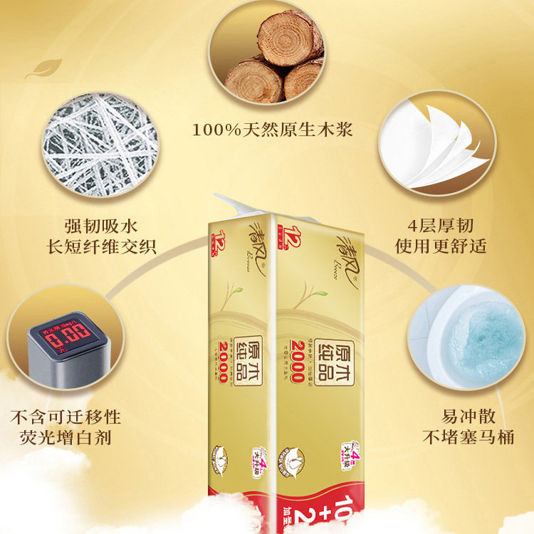 清风卫生纸2000克厕纸手纸原木