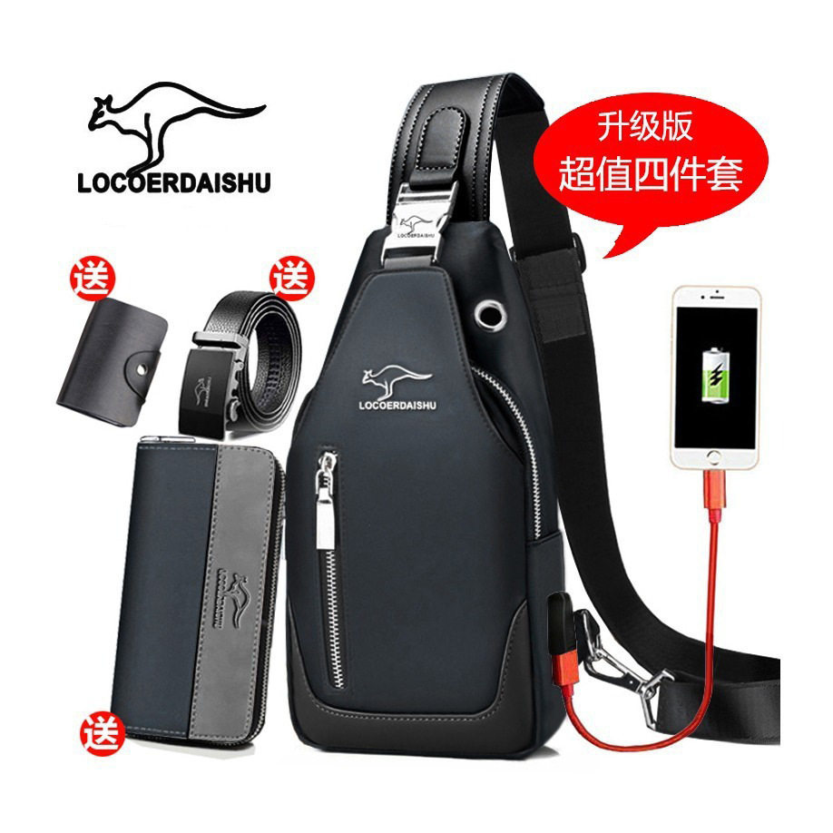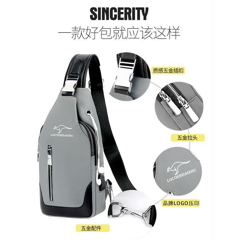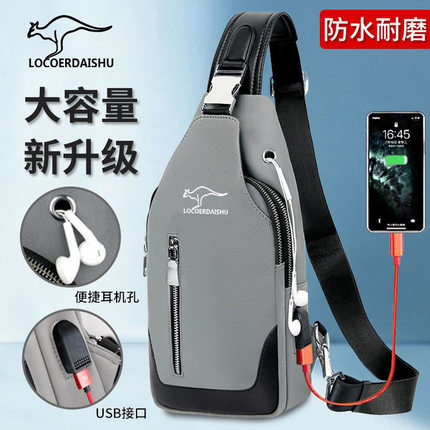 胸包牛津布单肩斜挎包2025新款可充电小背包男士时尚潮流休闲挂包