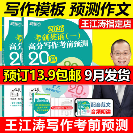 官方新版】新东方2026考研英语一英语二高分写作考前预测20篇 26王江涛考研必背预测作文模板 背诵英语范文冲刺历年真题试卷黄皮书