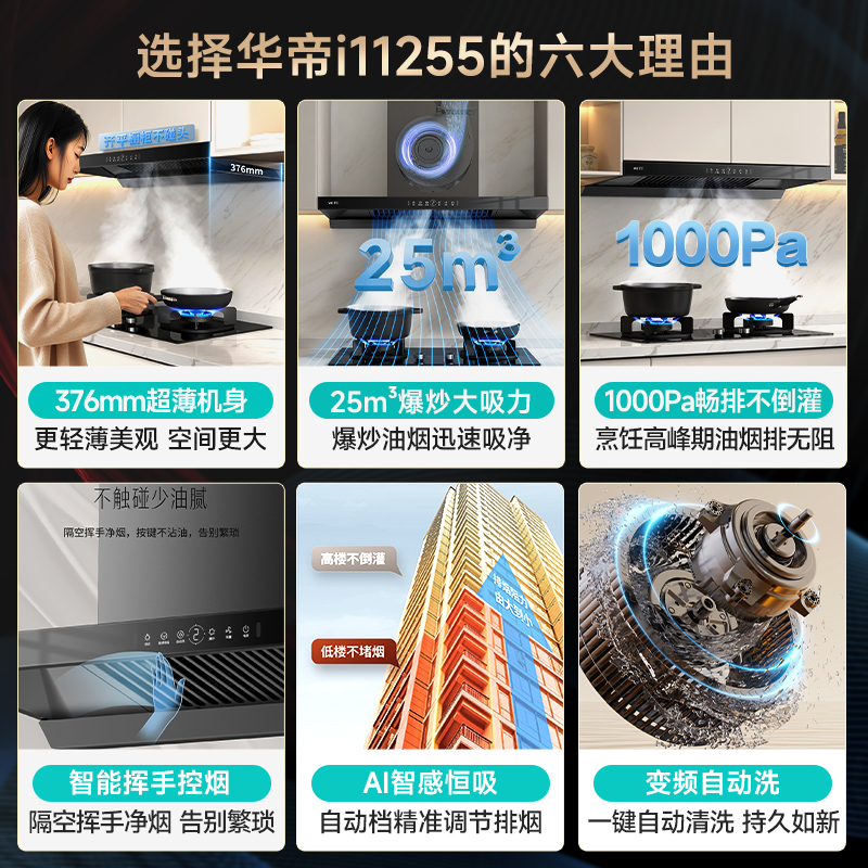 华帝油烟机i11255顶吸抽油烟机家用厨房自动清洗大吸力官方旗舰店