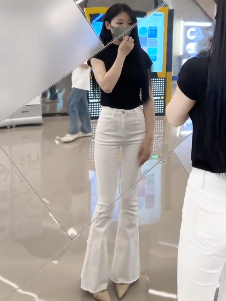 白色复古喇叭裤女春秋韩版弹力紧身显瘦显腿长高腰毛边提臀牛仔裤