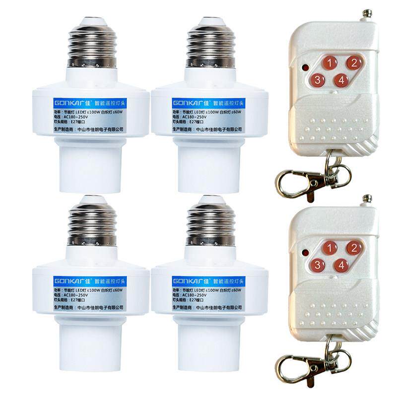 便携式遥控灯头一拖四路遥控开关电灯遥控灯E27螺口家用220V灯座