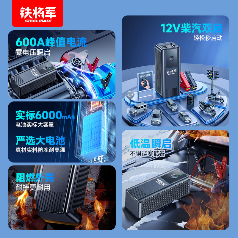 铁将军汽车应急启动电源12V大容量车载强启动紧急打火搭电宝神器