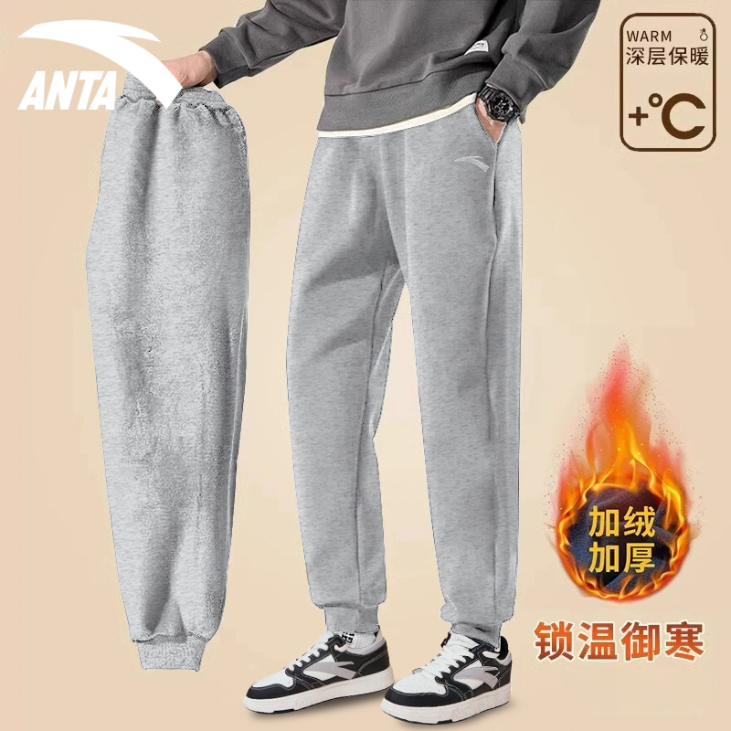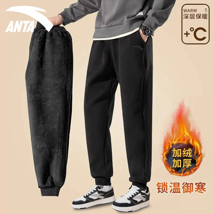 安踏加绒裤男2025秋冬新款官方旗舰加厚保暖休闲裤黑色束脚运动裤