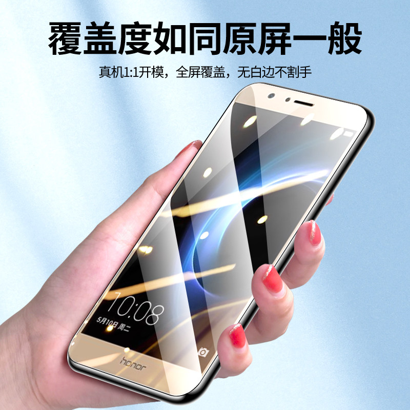适用荣耀V8钢化膜v9手机膜全屏覆盖华为荣耀v9play贴膜防摔KNT-AL10防指纹honorv8高清抗蓝光DUK-AL20刚化膜