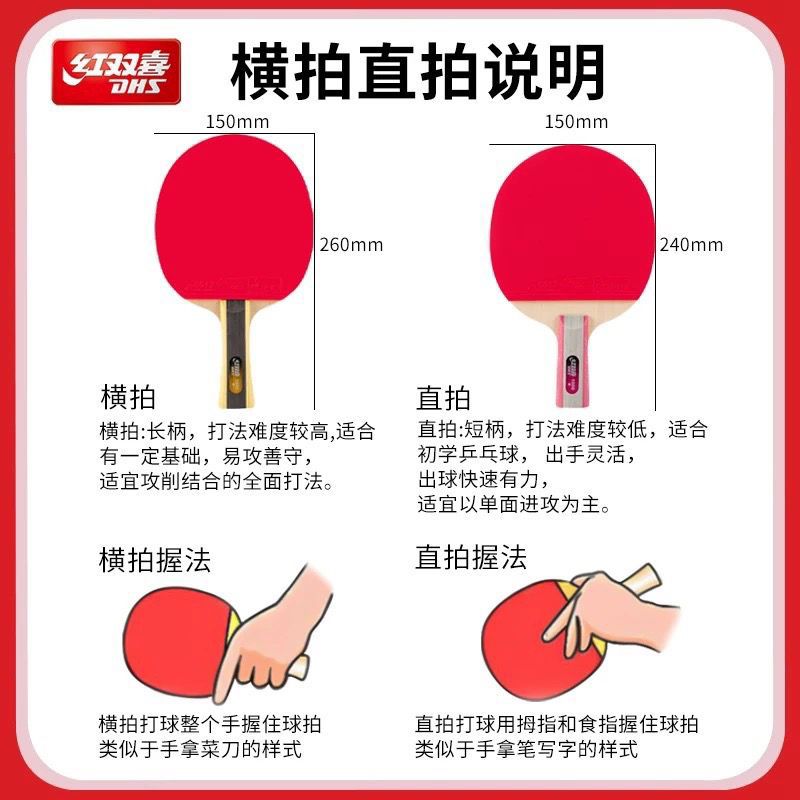 红双喜乒乓球拍儿童小学生初学专用四星五星专业级狂飙正品横直拍