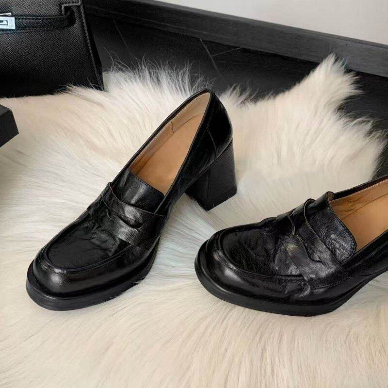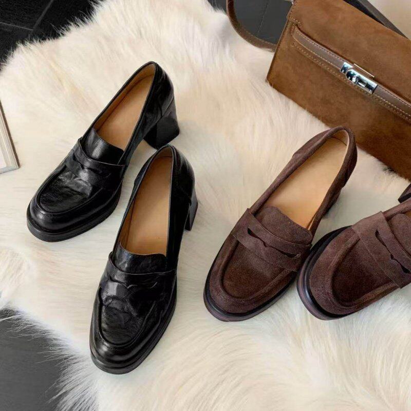 7cm粗跟时尚百搭复古单鞋女2026年春季新款高级感浅口高跟乐福鞋