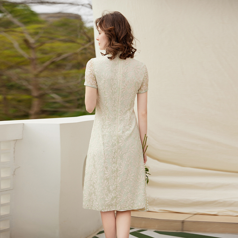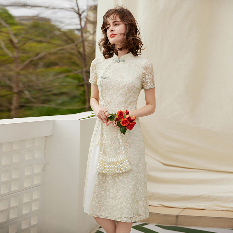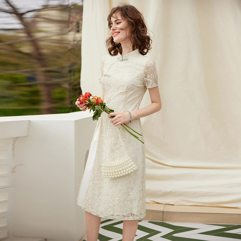 白鹿语新中式立领盘扣连衣裙2025夏款国风镂空绣花流苏改良旗袍