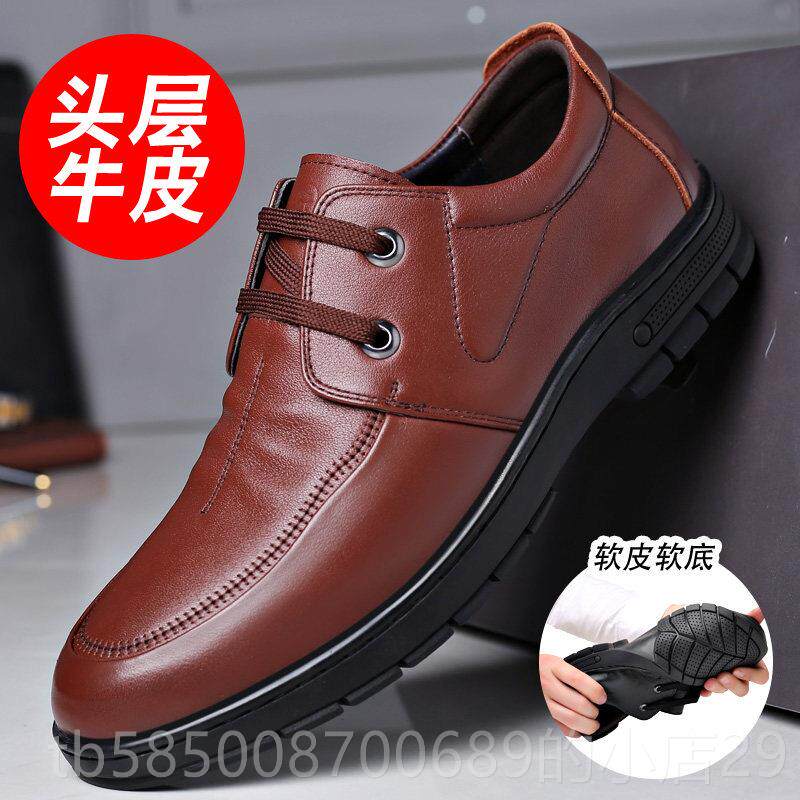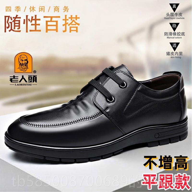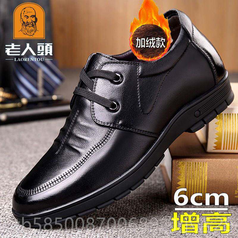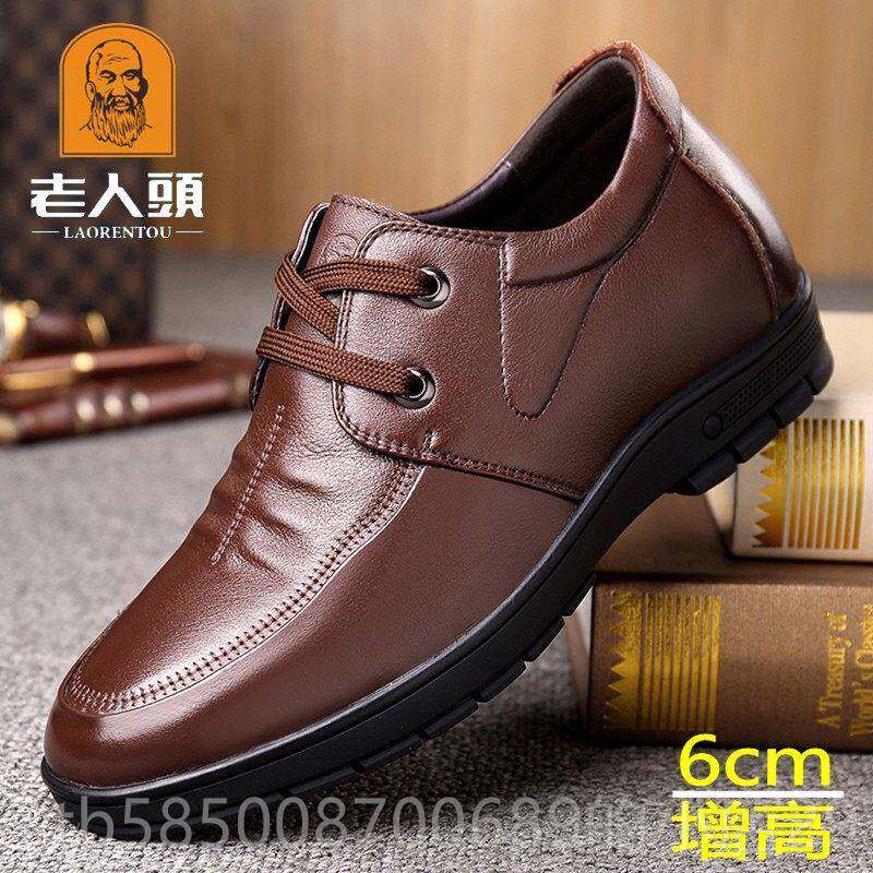 高档老人头男鞋内增高6休cm7皮男真商皮头层牛皮软底务闲春夏小码