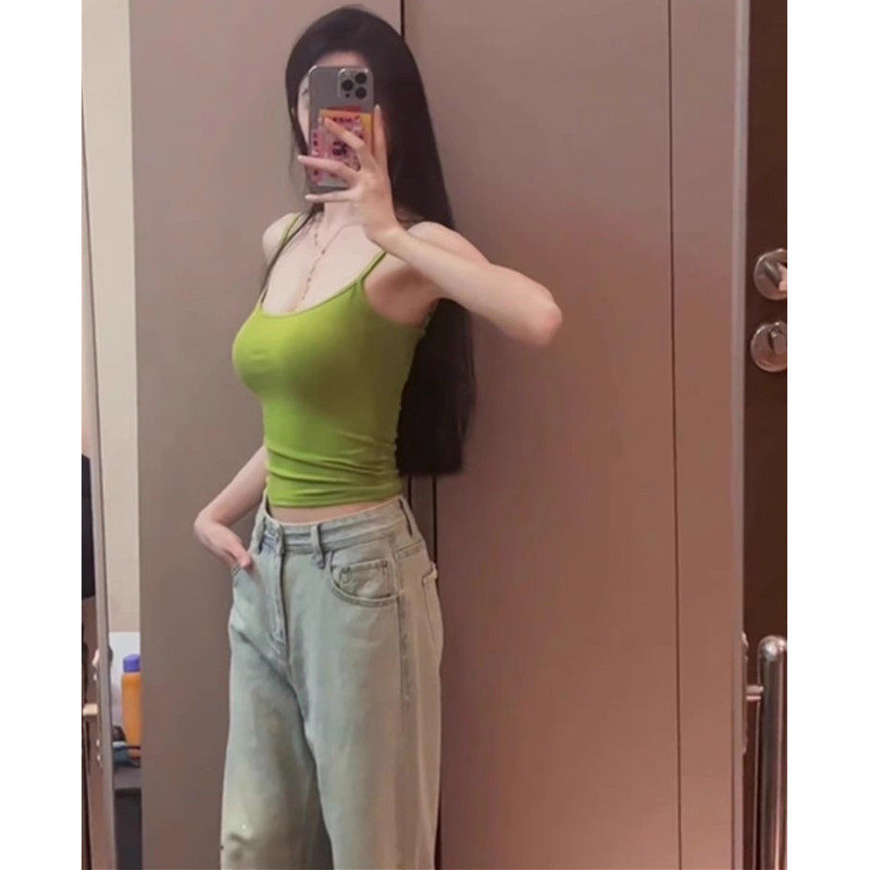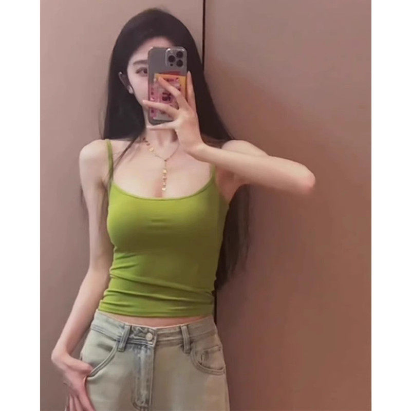 绿色小吊带背心女夏季外穿带胸垫