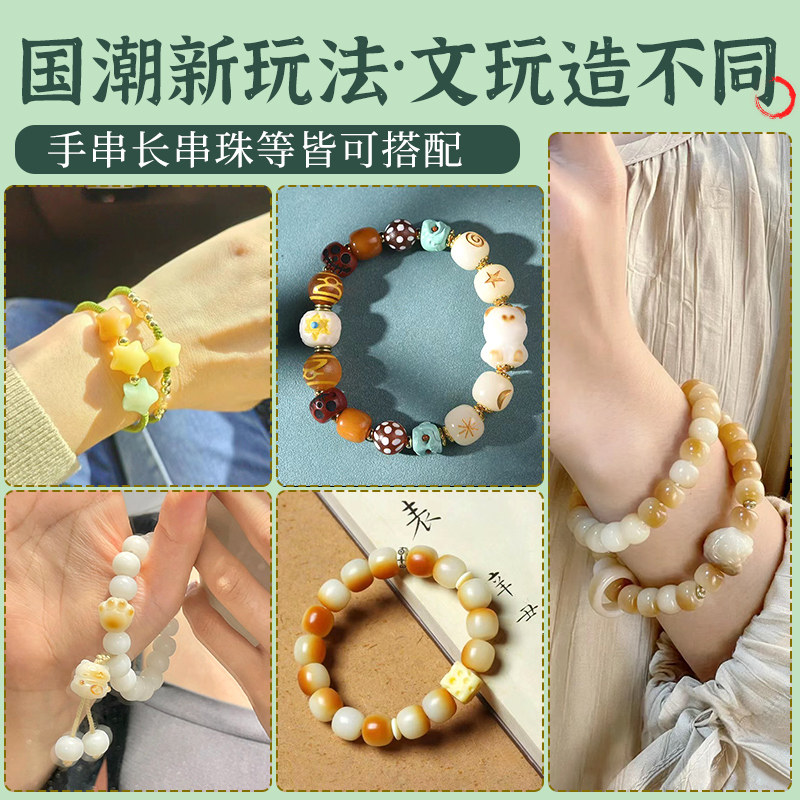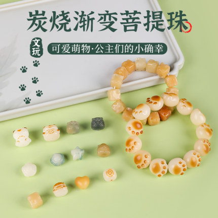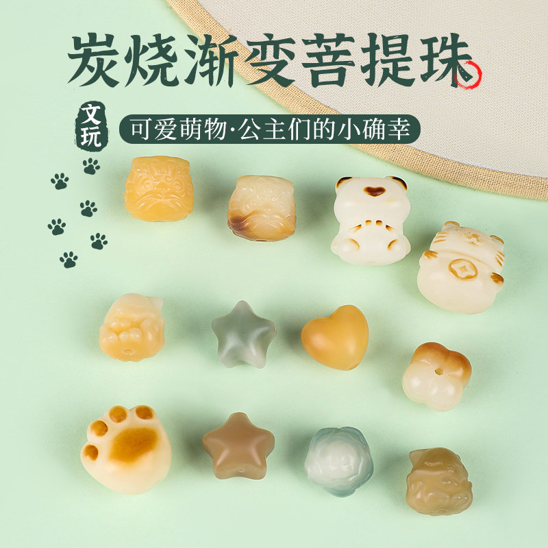 炭烧猫爪菩提散珠配件天然菩提根手串挂件手链配饰diy配珠单珠子