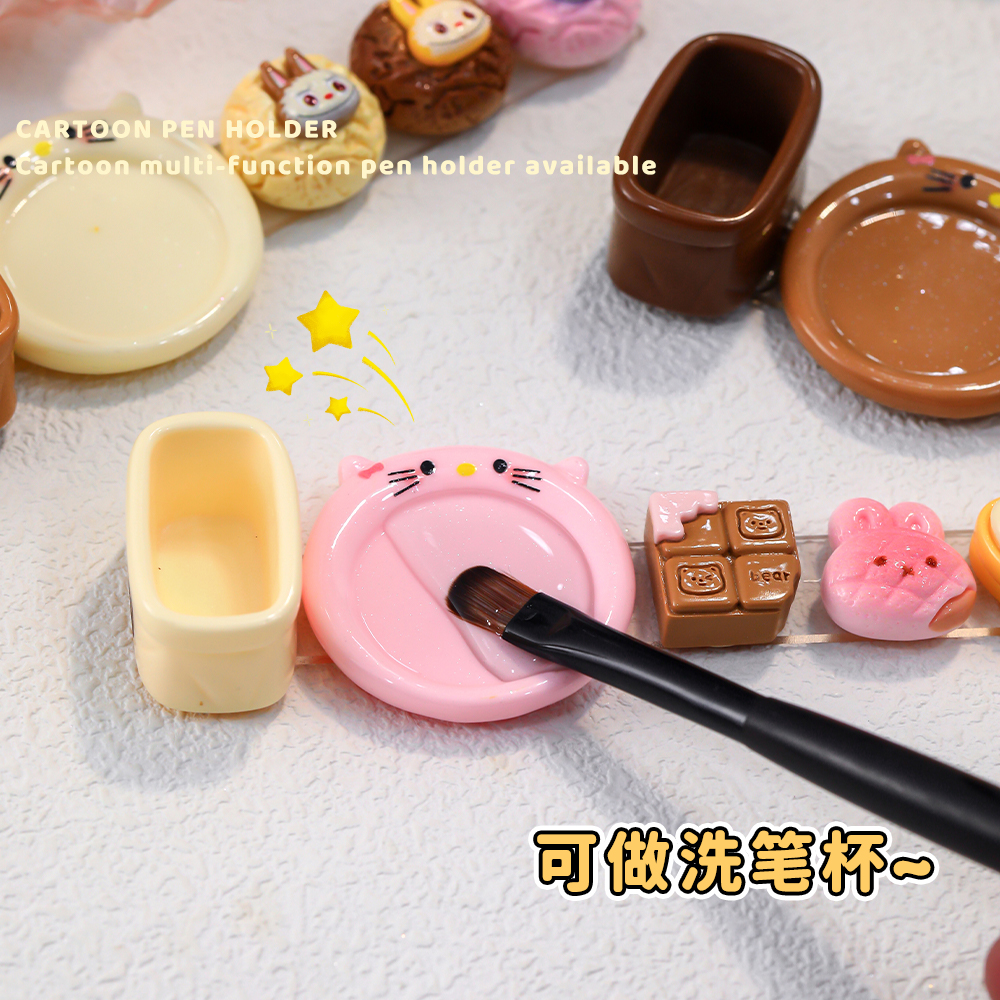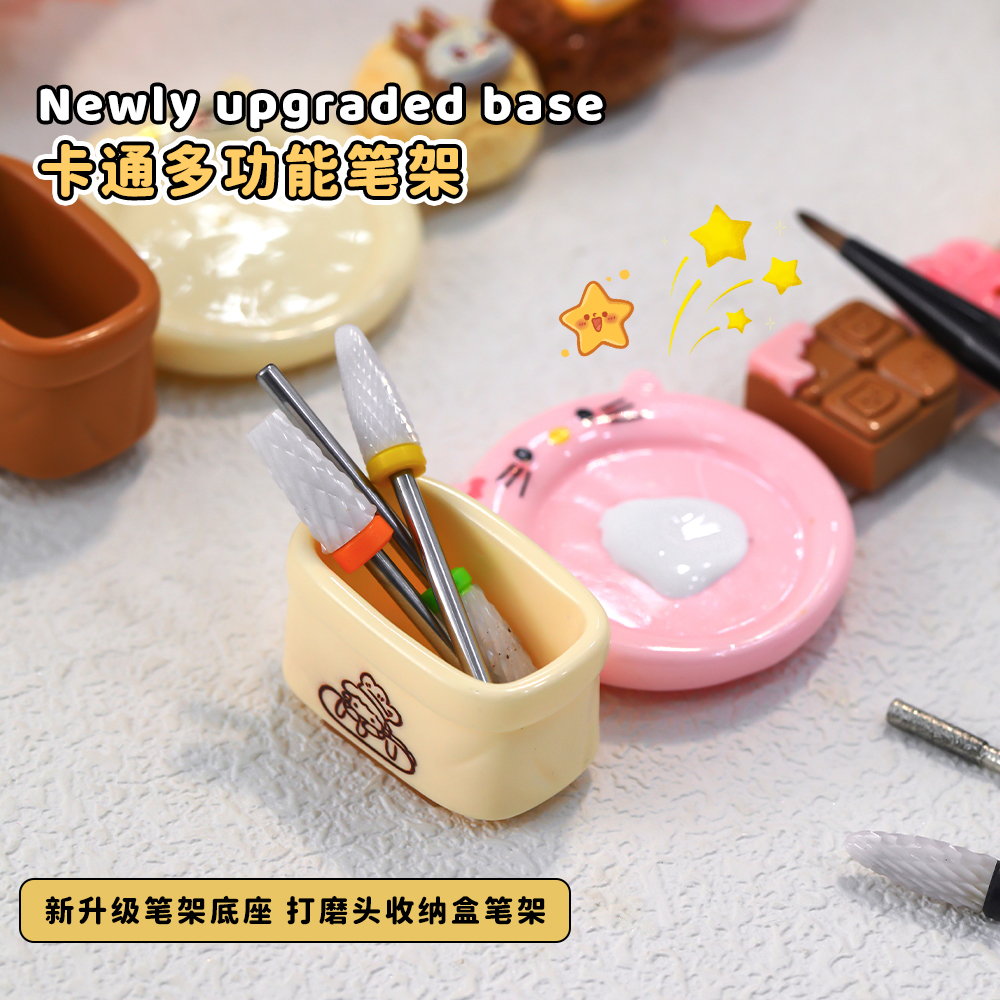 卡通猫咪多功能美甲笔架可爱小熊调色盘洗笔杯打磨头收纳笔托工具
