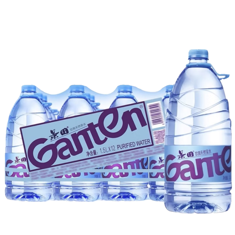 Ganten景田饮用纯净水1.5L*12瓶整箱家庭聚会用水大瓶装非矿泉水
