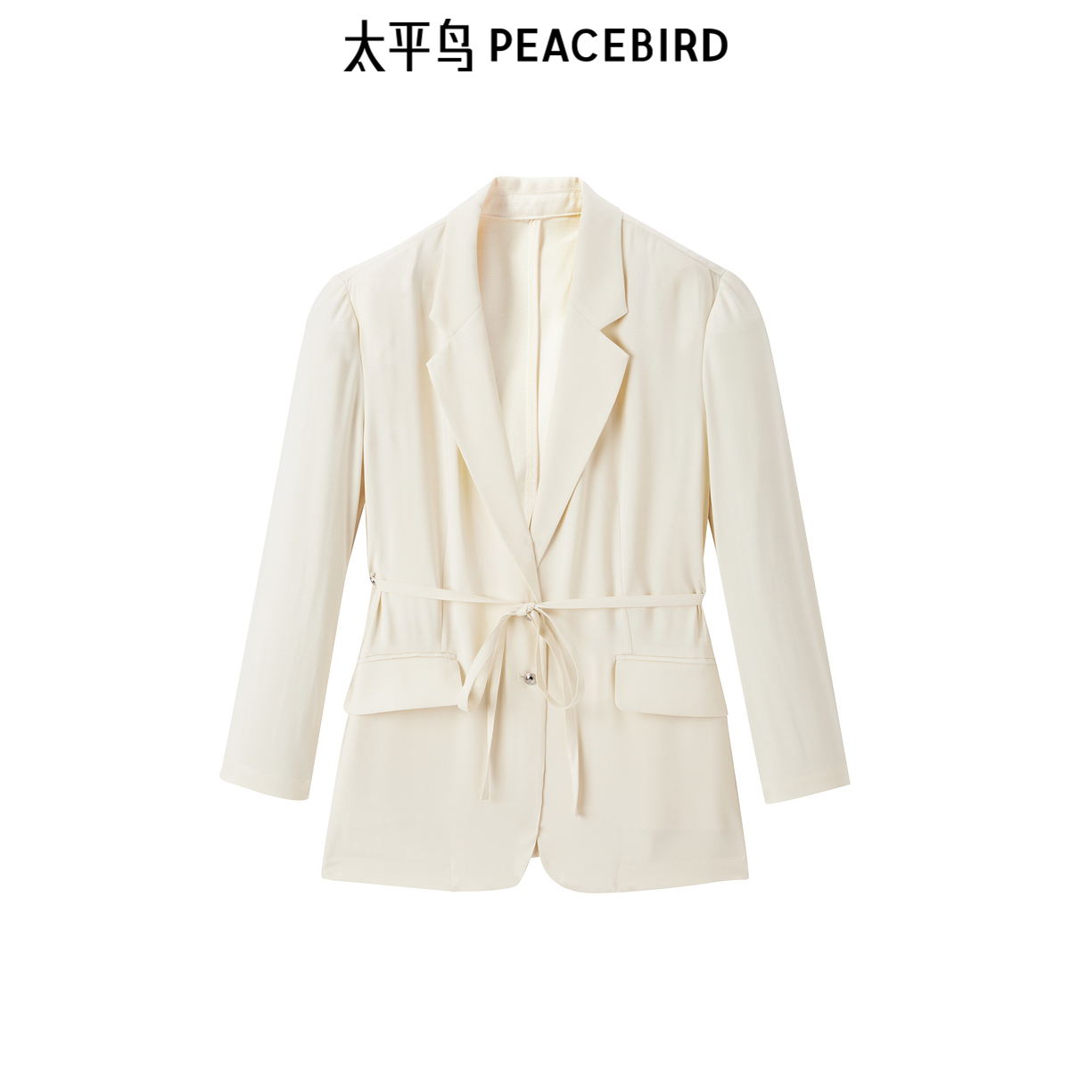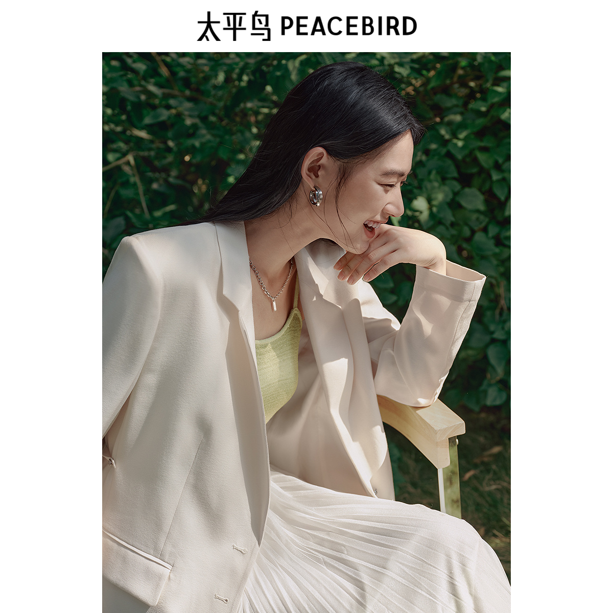 太平鸟女装2025年轻薄透气斜纹西装外套女米白色品质A1BAF1508