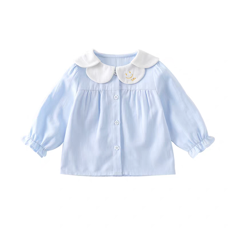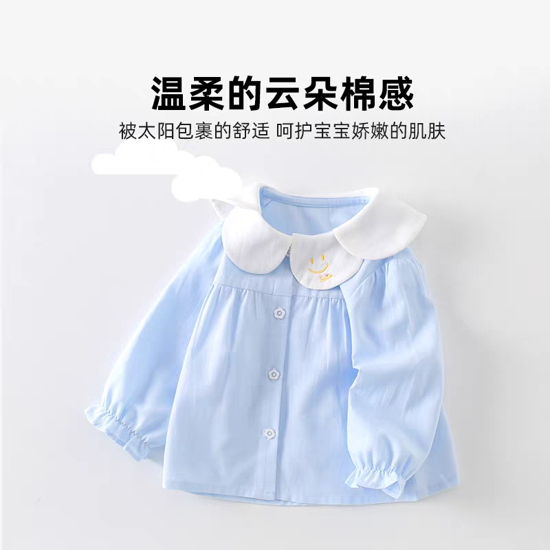 女童T恤打底衣春装2025新款女宝宝翻领衣服儿童春秋女宝纯棉衬衣