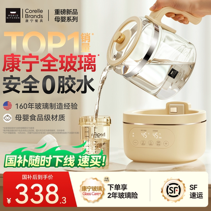 康宁WORLDKITCHEN全玻璃恒温电热水壶养生婴儿专用家用泡奶调奶器