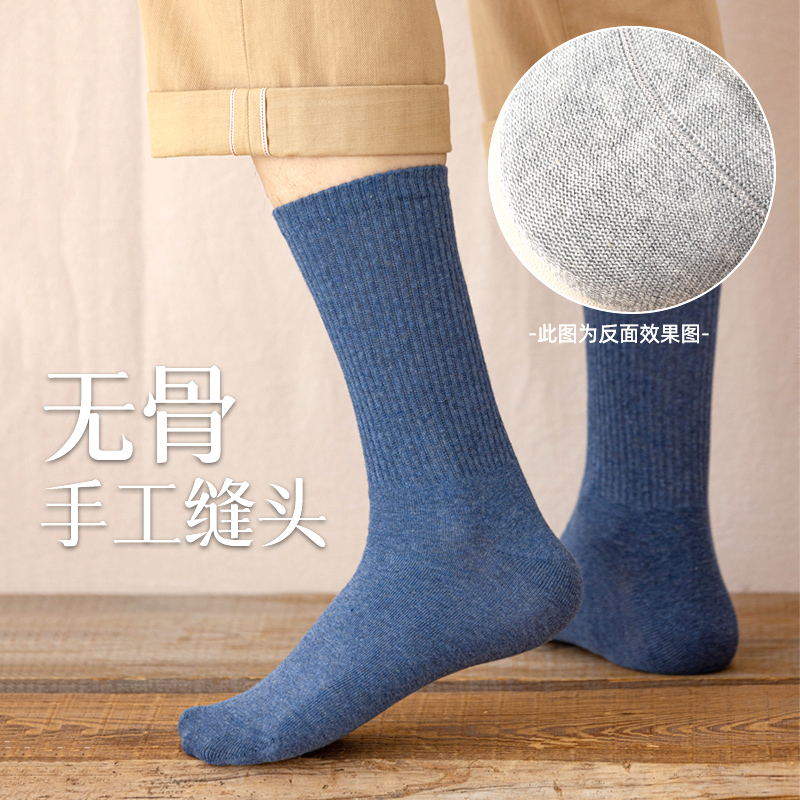 全棉高筒袜子男秋冬款优质纯棉吸汗7a抗菌防臭中筒冬季厚长袜无骨
