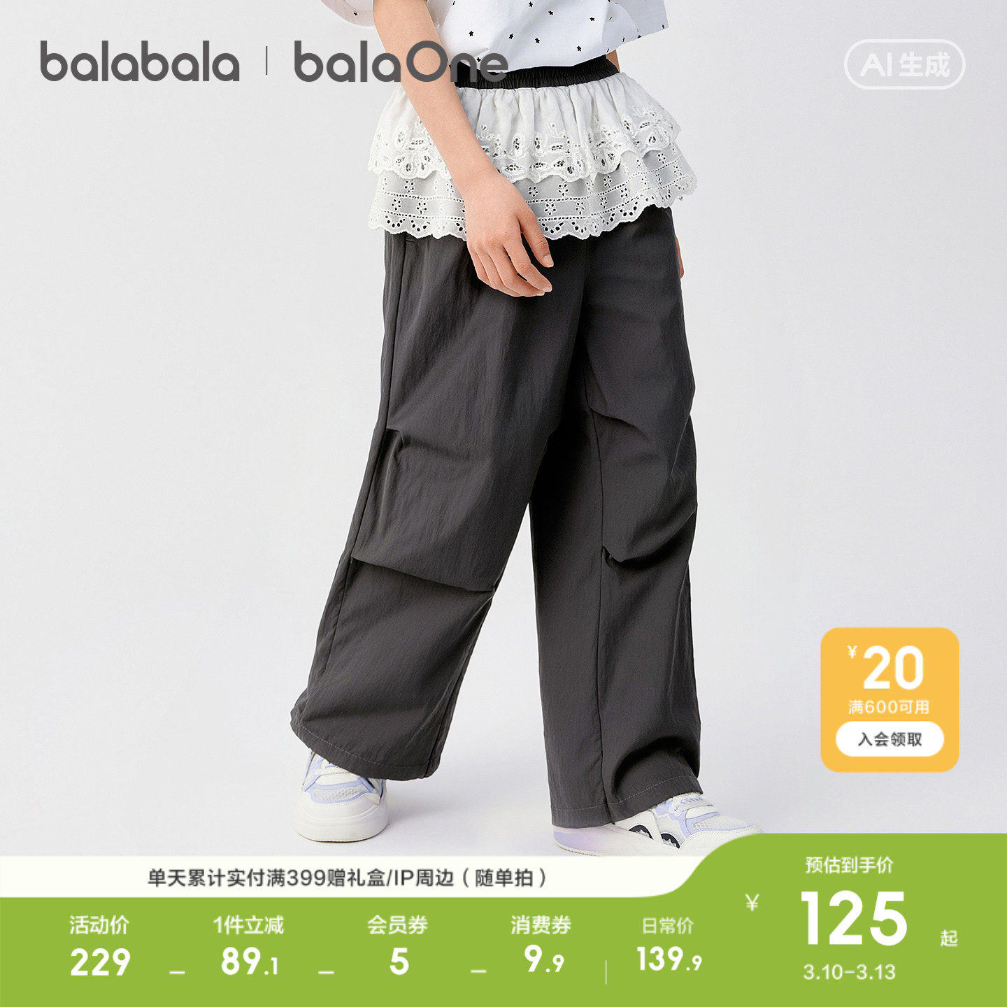 【balaOne】巴拉巴拉童装儿童裤子女童2026春装新款工装裤假两件