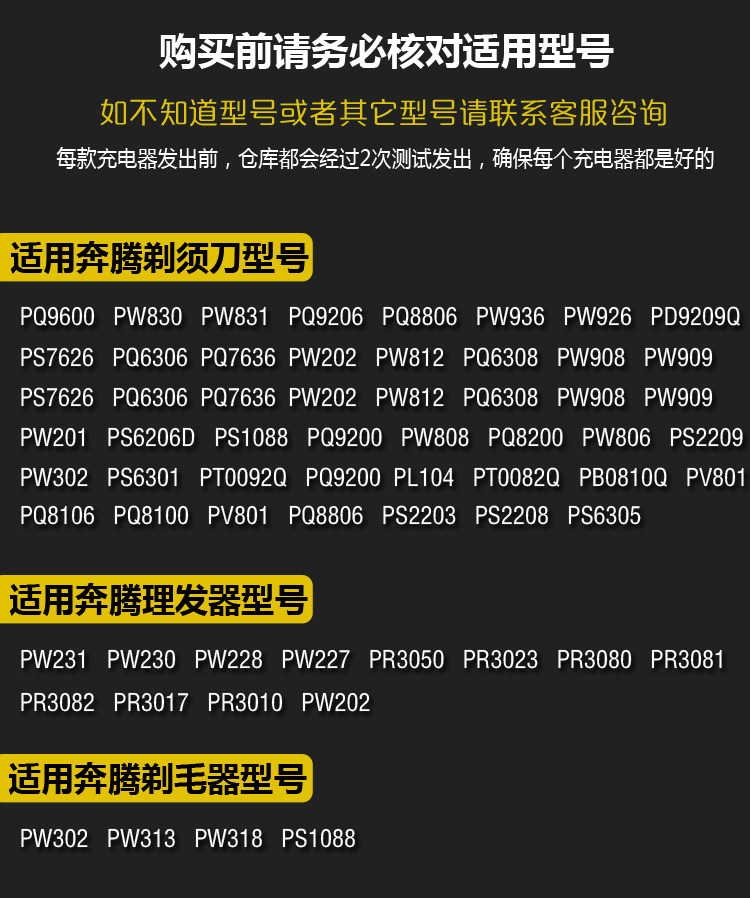 适用奔腾理发器充电器电源线PW227 228 230 PR3010电推剪充电线