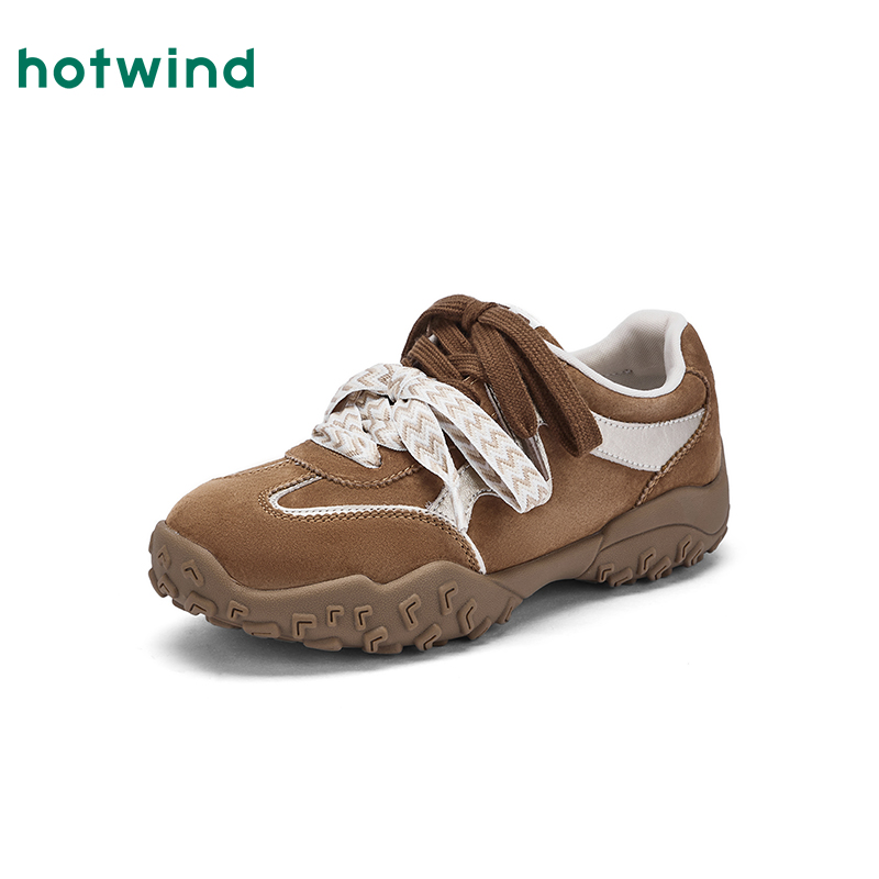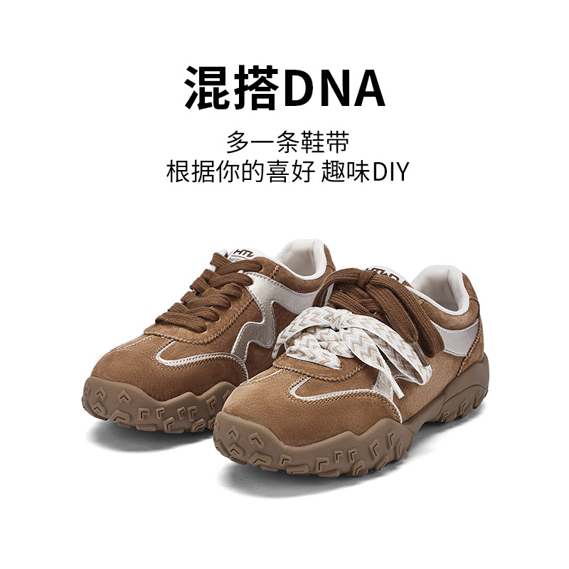 热风运动休闲鞋女2025年秋季新款棕色复古阿甘德训鞋百搭户外女鞋