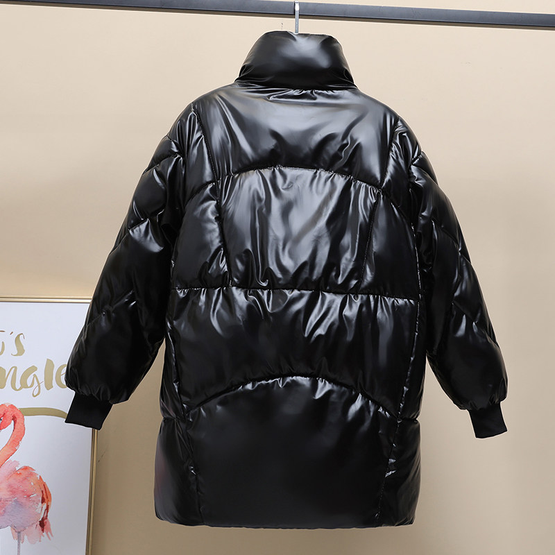 宽松棉袄大码面包服女冬装新款中长款亮面免洗羽绒棉服棉衣外套
