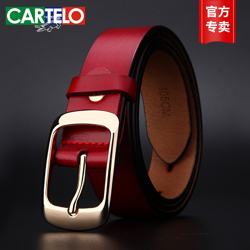 卡帝乐鳄鱼皮带女真皮加宽女式