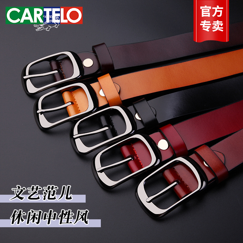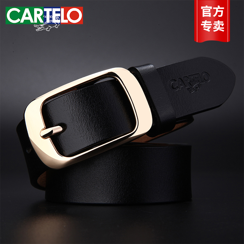 卡帝乐鳄鱼皮带女真皮针扣腰带加宽韩版女式休闲青年牛皮裤带正品