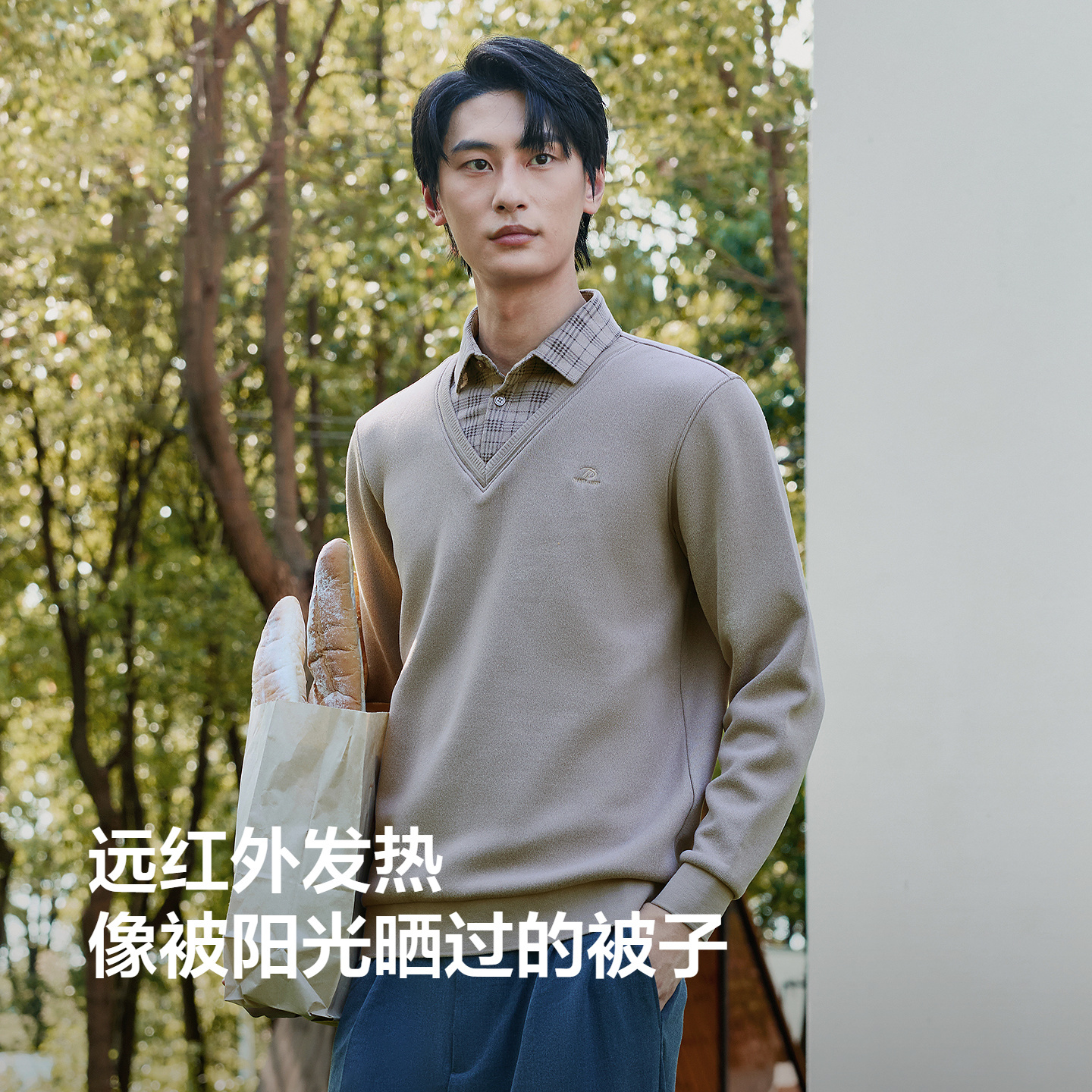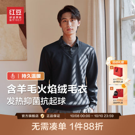 【含羊毛加绒】红豆男士毛衣假两件新款加厚保暖翻领针织毛衫爸爸