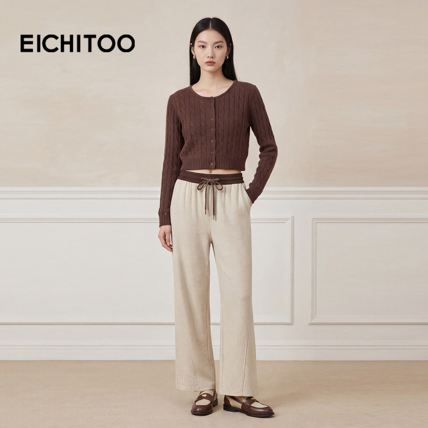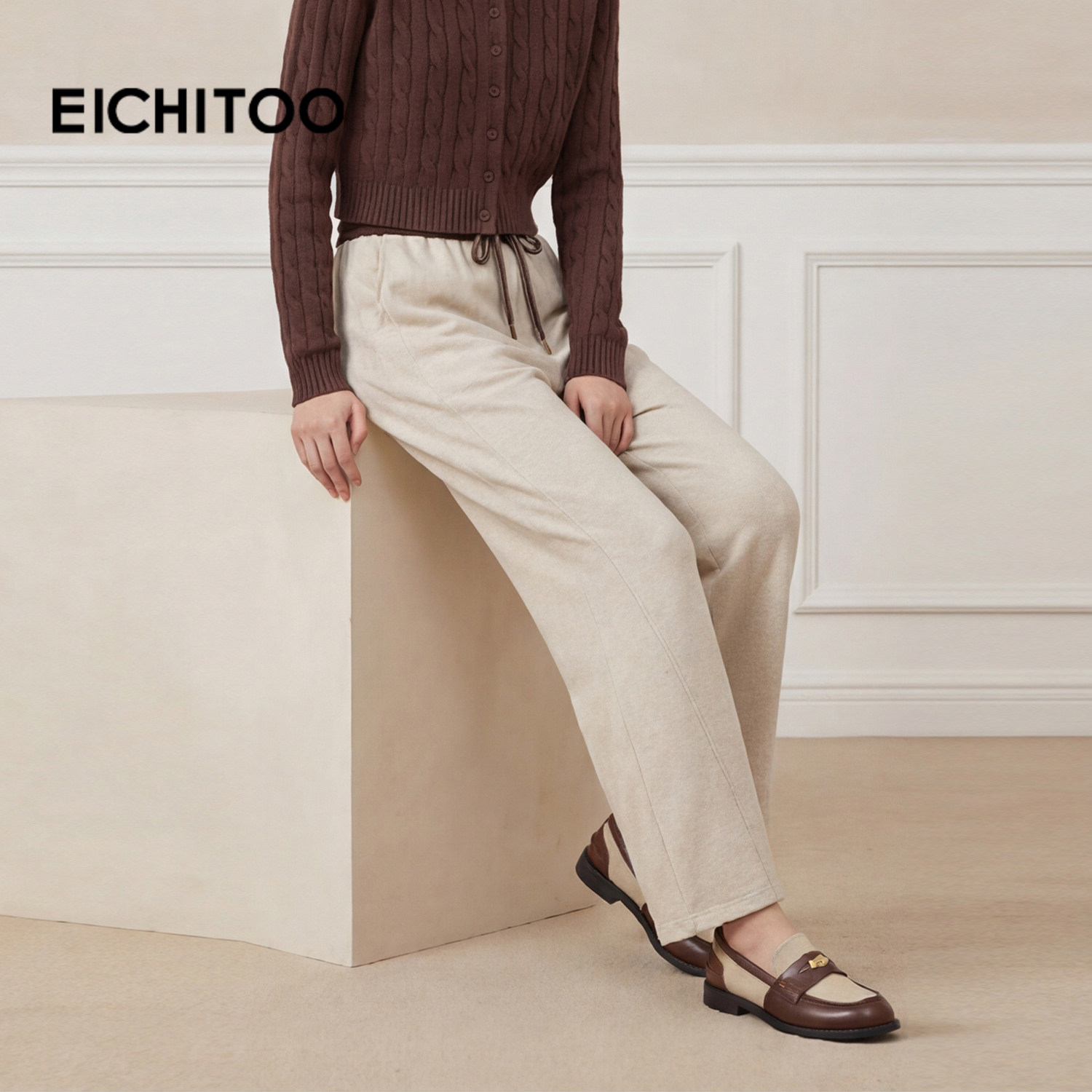 爱居兔撞色哈伦裤女秋季软糯舒适燕麦色休闲裤