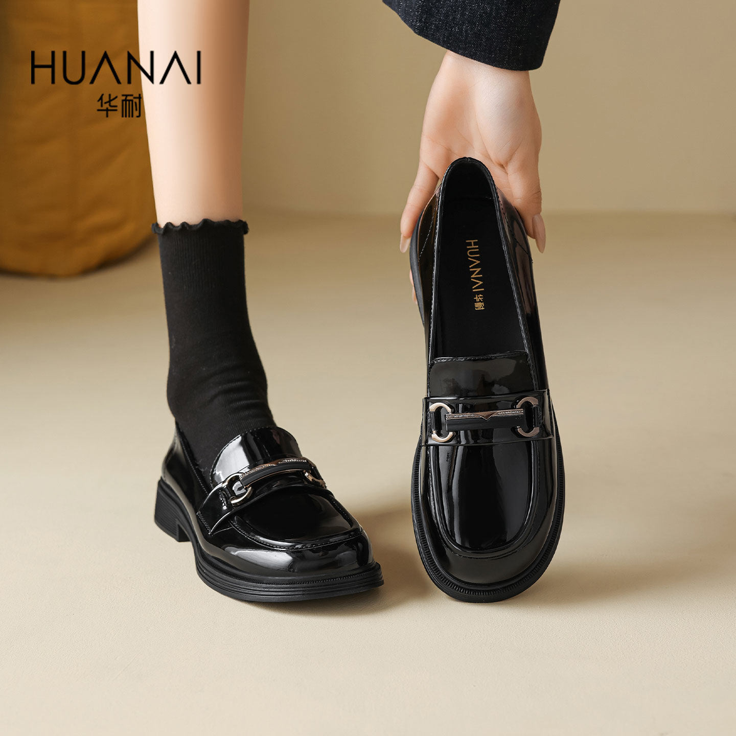 华耐厚底乐福鞋女款2026春季新款平底jk小皮鞋百搭英伦风软底单鞋