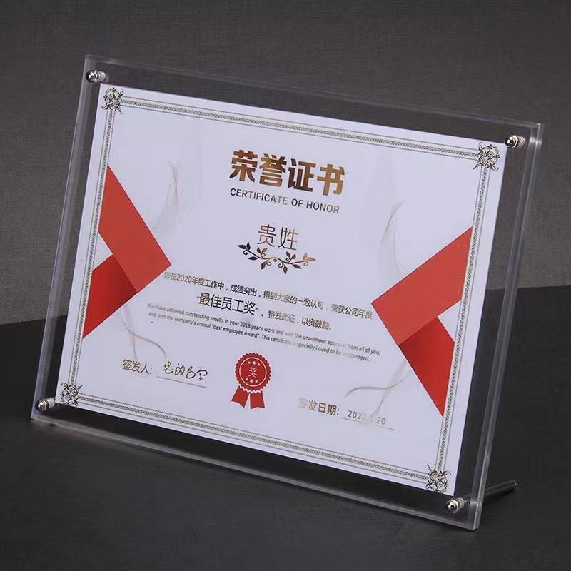 相框空框亚克力透明展示荣誉证书摆台框奖状画框A3a4营业执照框架