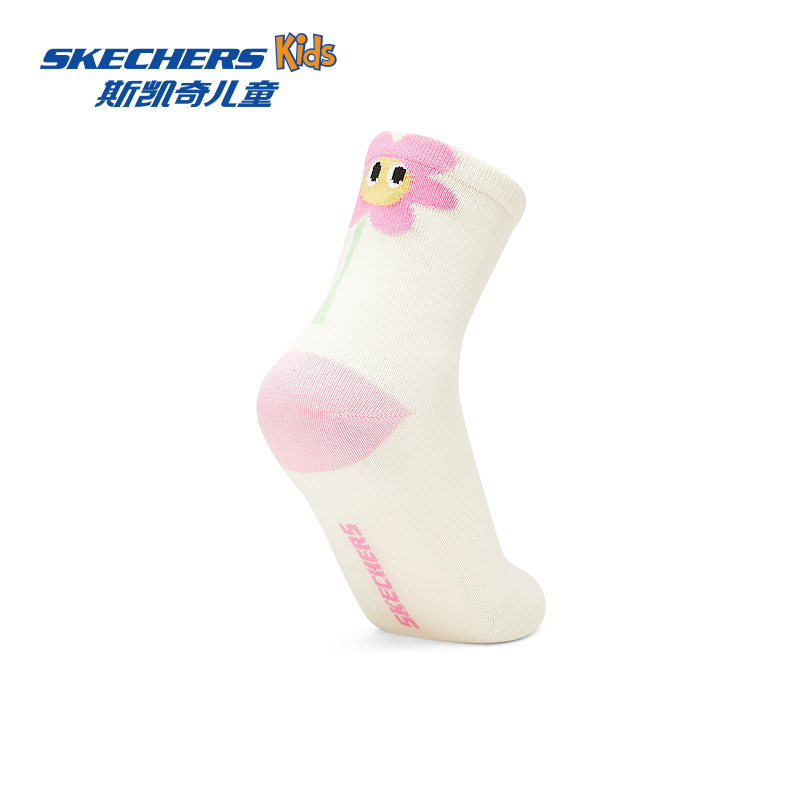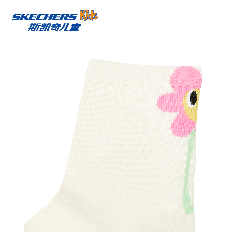 Skechers斯凯奇女童运动袜子百搭拼色秋冬儿童抗菌中筒袜2对装