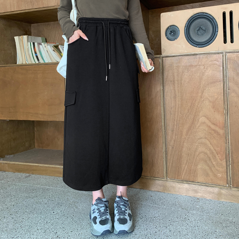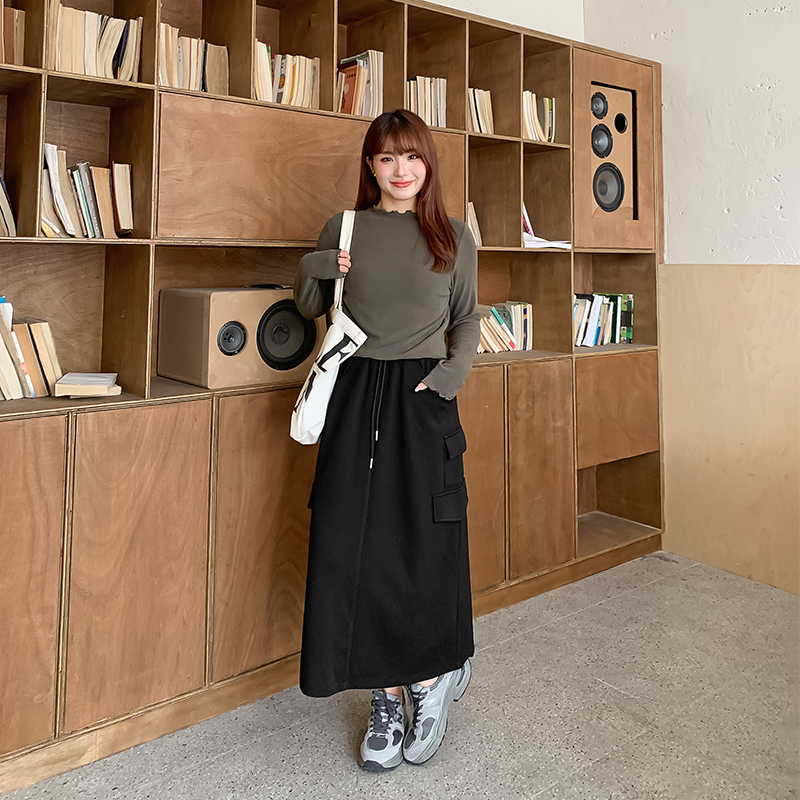 大码女装高腰工装卫衣半身裙秋冬200斤胖mm休闲松紧腰裙子32145