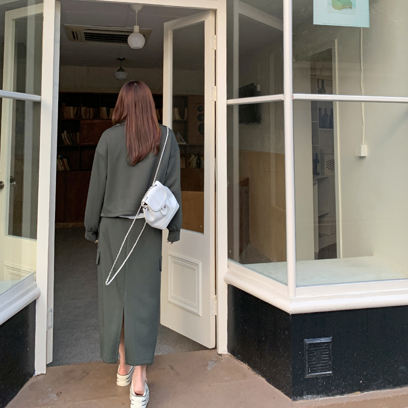 胖mm高腰垂感空气层工装卫衣半裙