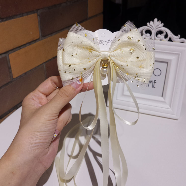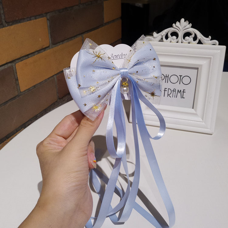 纯手工蝴蝶结发夹lolita头饰弹簧夹古风汉服飘带马尾发卡星星发饰