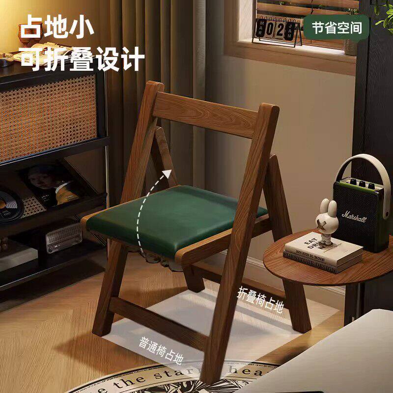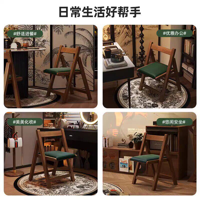 餐椅2026新款实木折叠椅子家用可折叠靠背椅中古风简约书桌写字椅