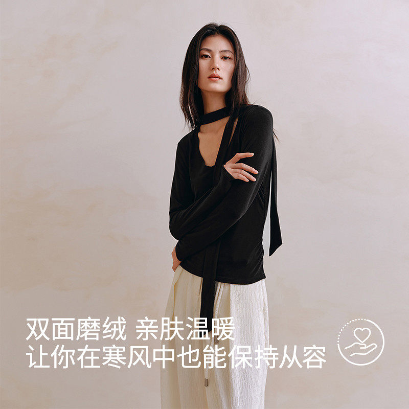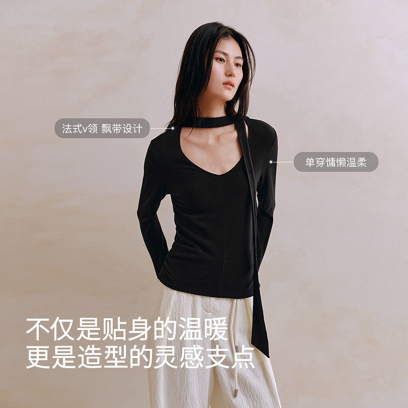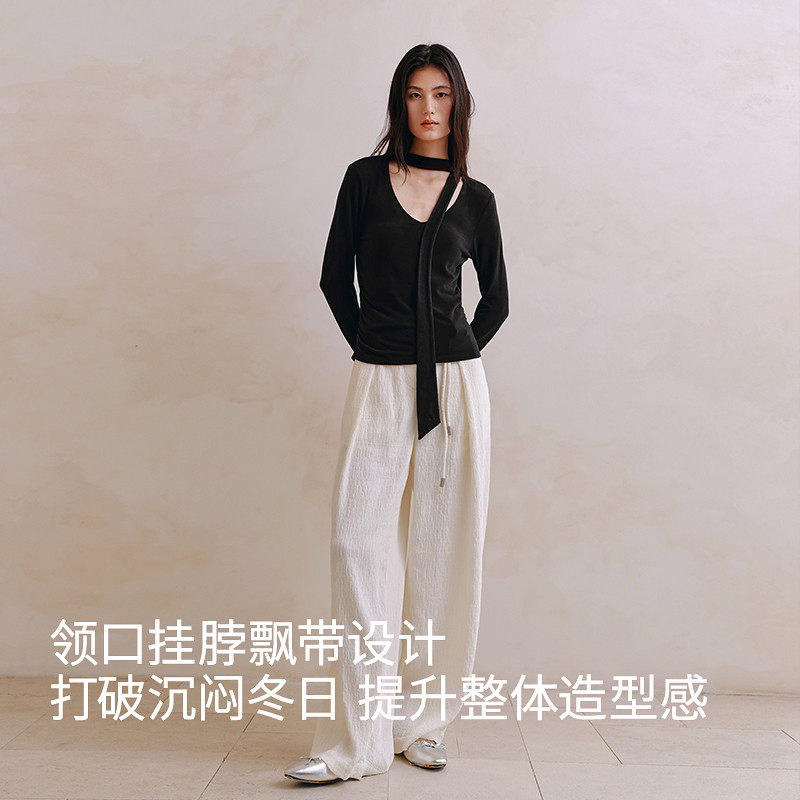 YINER LIFE【云绒丝漾】绵羊毛打底衫女士挂脖飘带设计感保暖上衣