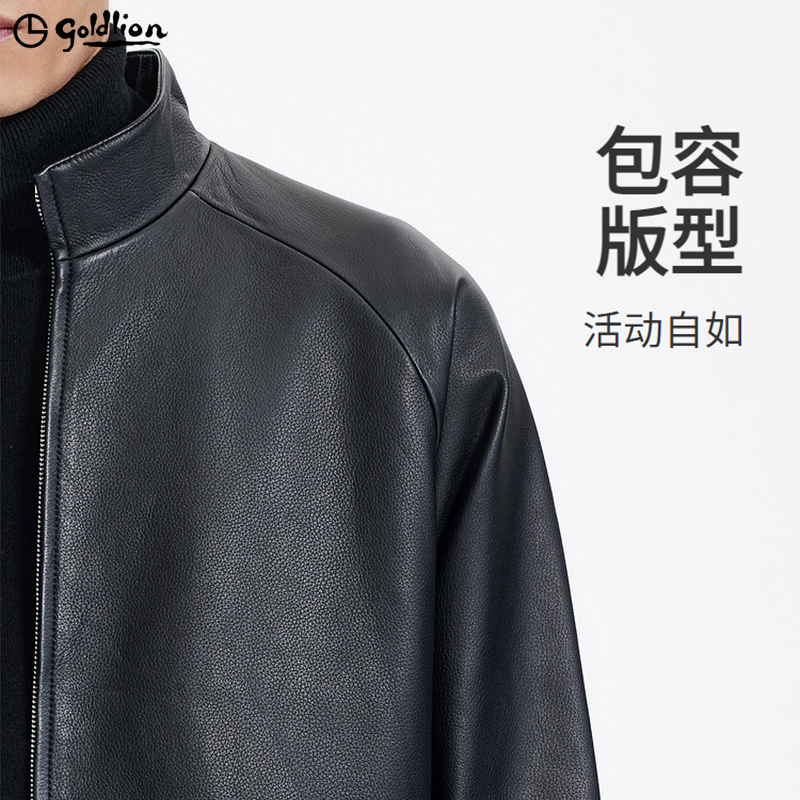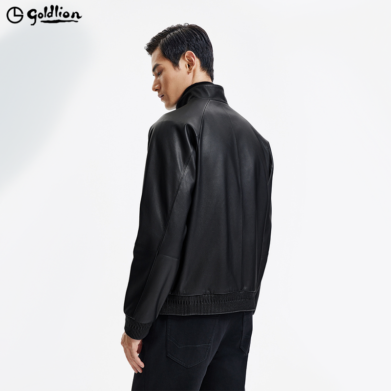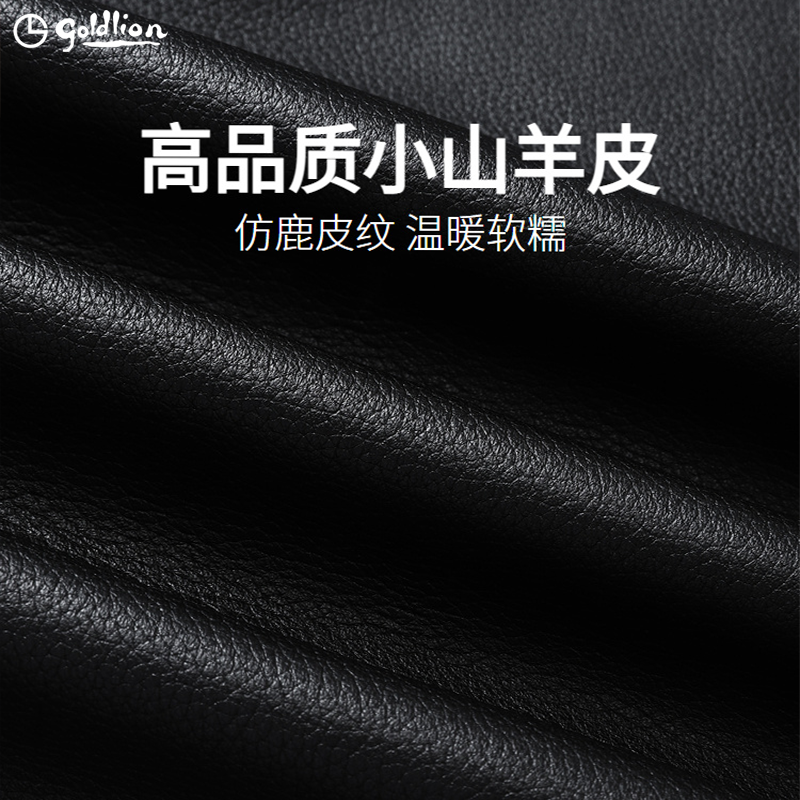 金利来秋冬新款男士皮衣羊皮仿鹿纹时尚立领拉链夹克外套男