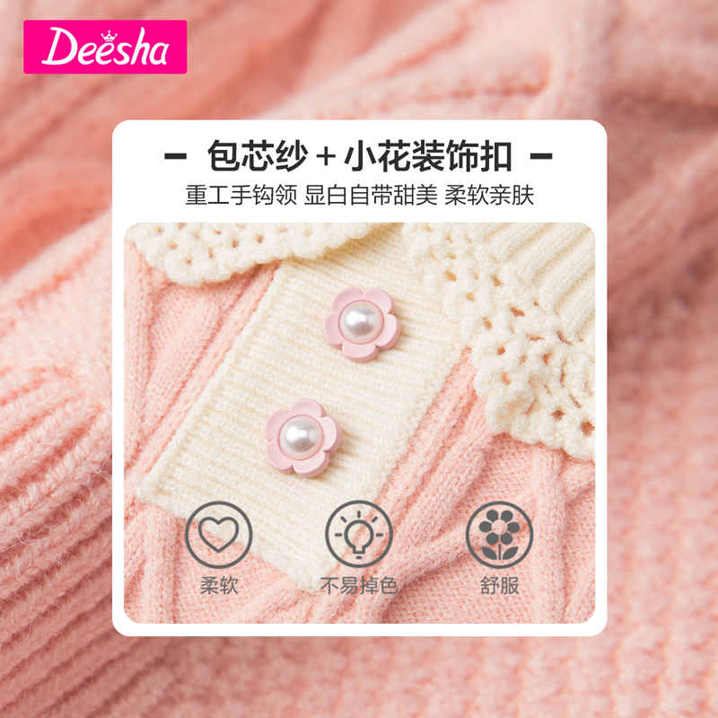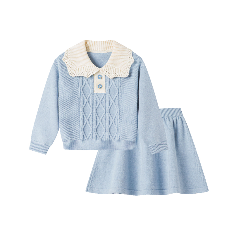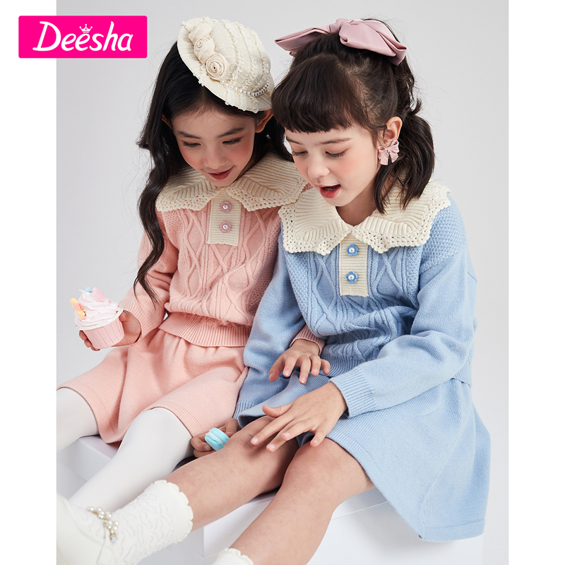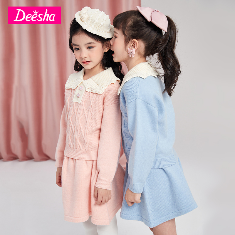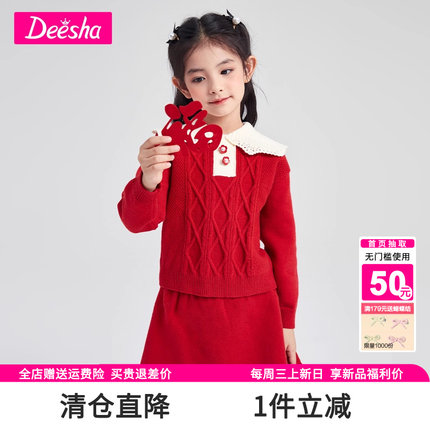 笛莎女童套装秋冬季中大童儿童毛衣裙拜年服红色新年装衣服两件套