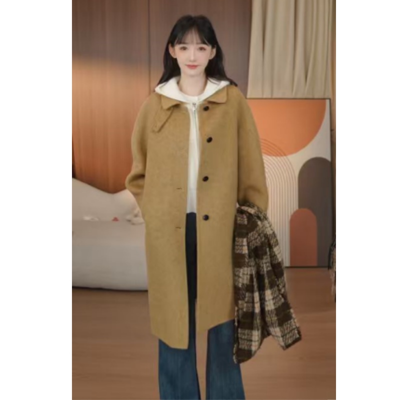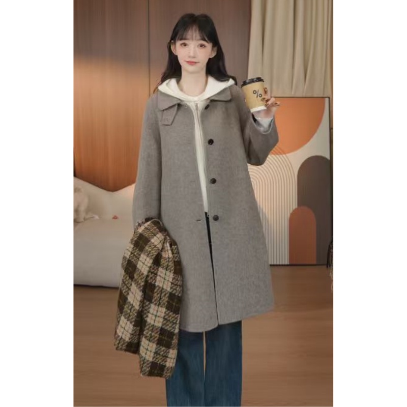 经典复古英伦风优雅百搭单排扣手工羊毛大衣5506