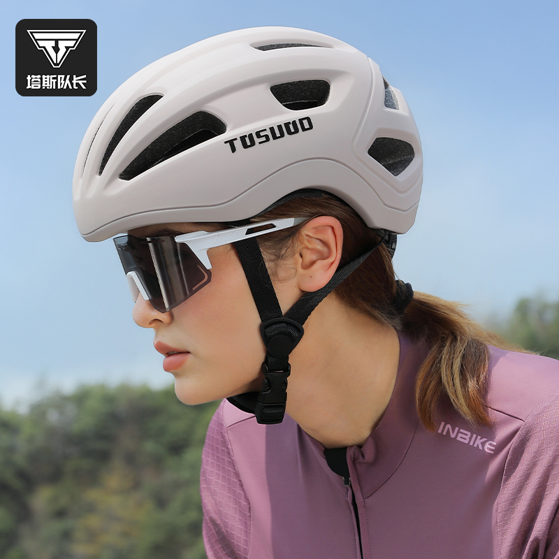塔斯队长骑行头盔女自行车一体透气山地公路车安全帽男带风镜装备