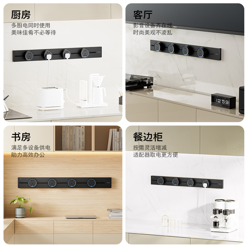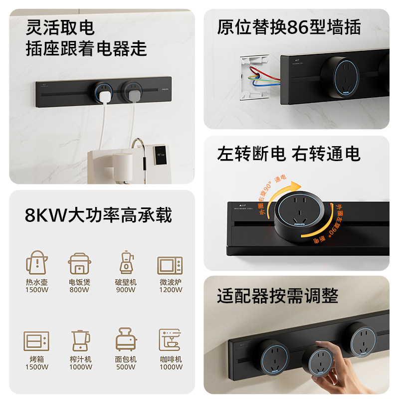 飞利浦移动轨道插座厨房客厅餐边柜无线明装导轨排插家用滑轨插座