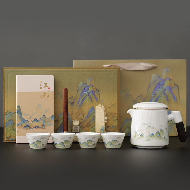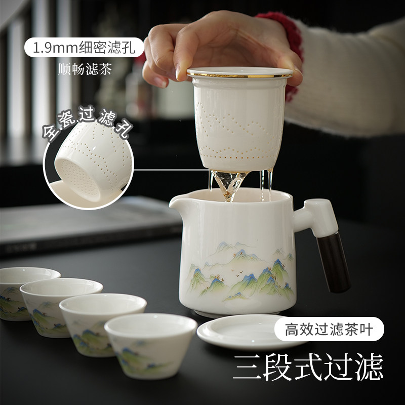 旅行茶具羊脂玉瓷套装户外便携式露营喝茶装备陶瓷办公功夫泡茶壶