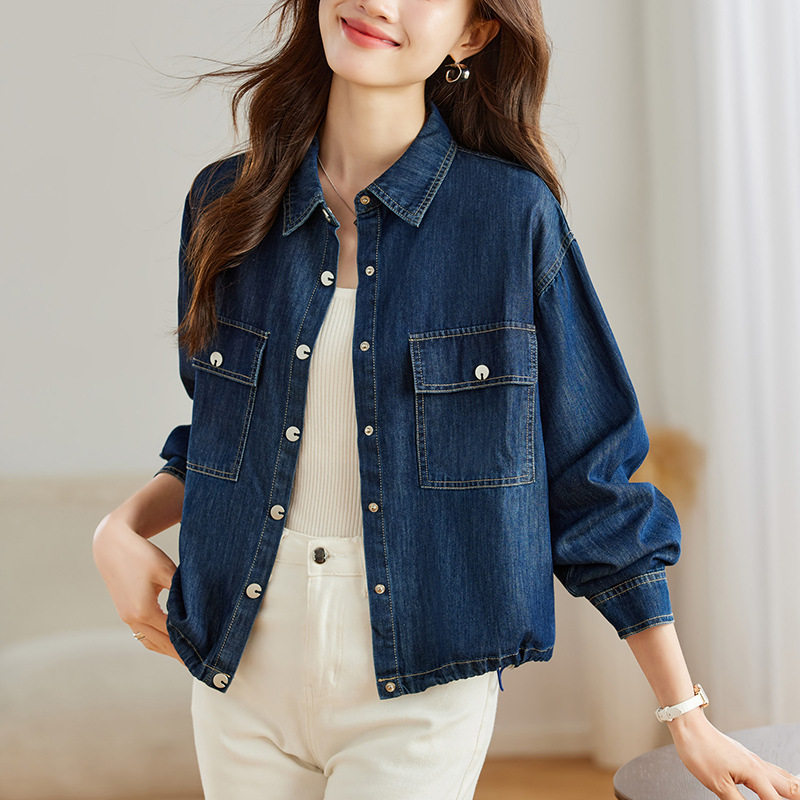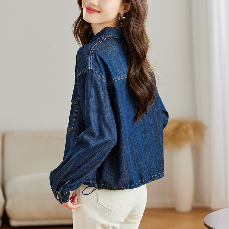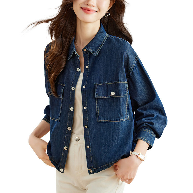 JHM牛仔衬衫女2025春装新款韩版宽松休闲短款衬衫外套小个子上衣