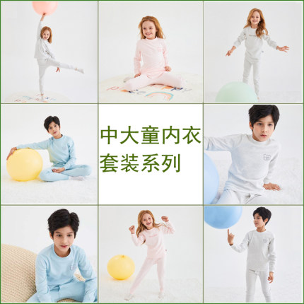 拉比中大童秋冬内衣半高领圆领秋衣秋裤打底睡衣套装柔软透气舒适