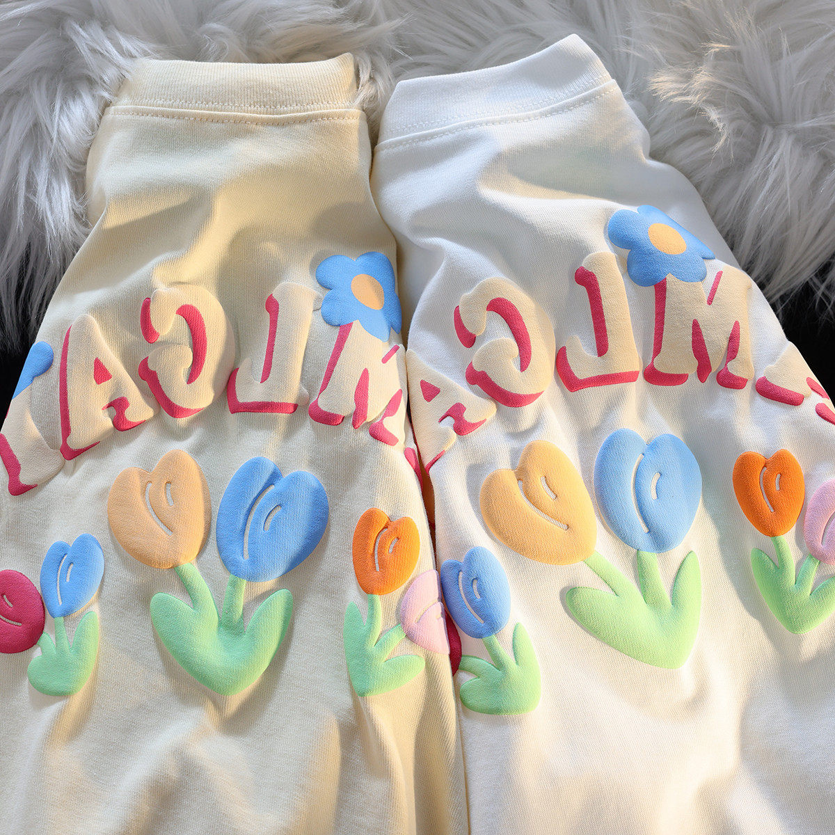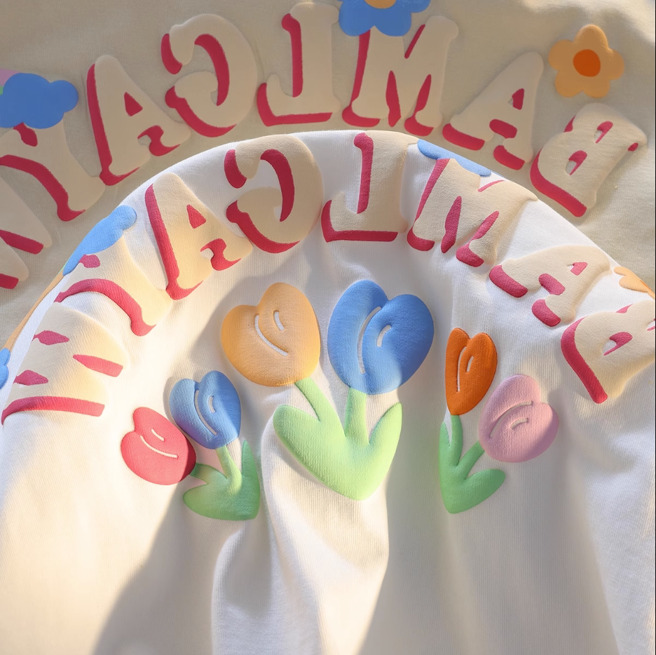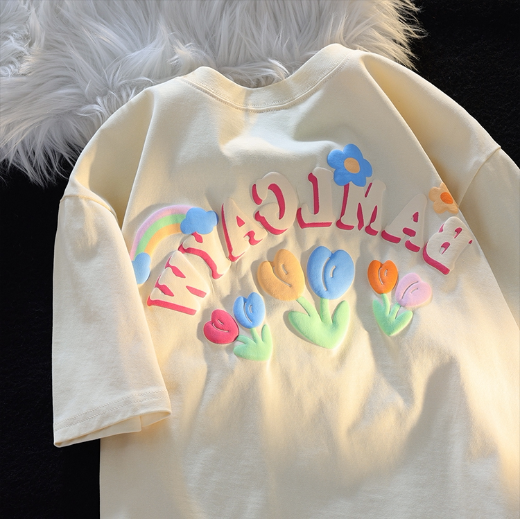 可爱彩色纯棉T恤男女夏季