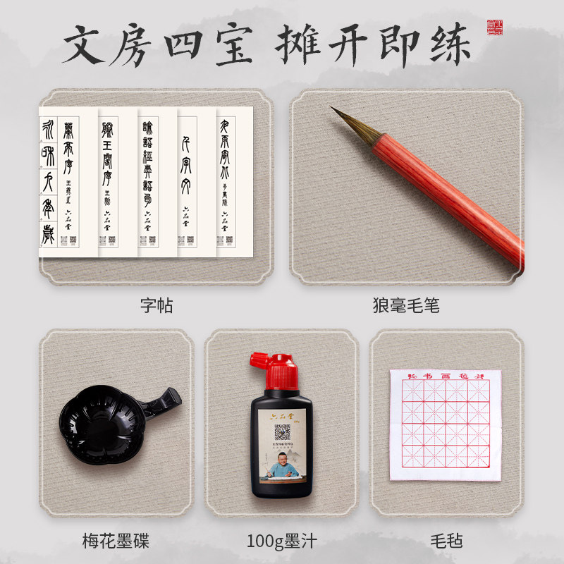 六品堂小篆毛笔临摹字帖初学者入门套装成人软笔书法练字帖集序序小学生篆书临摹字帖毛笔套装书法专用纸